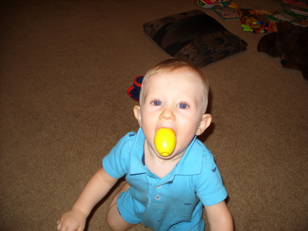 We've been trying to keep track of what we give him lately. We got the results back from his allergy test and he's pretty allergic to eggs and a little allergic to wheat(gluten). So, the doctor told us to avoid eggs completely, but not worry about gluten until we meet with her for his one year appointment where she'll set us up with an allergist. So far we haven't had any breakouts, yay!